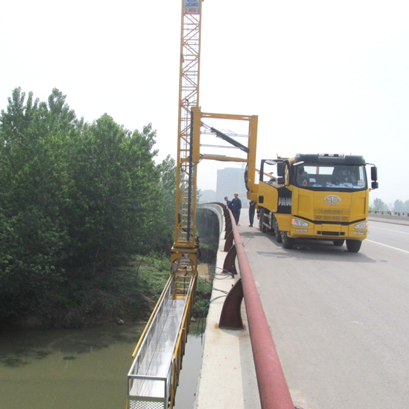 桁架式橋梁檢測車,采用通道式作業平臺,穩定性好,承載能力大,使用時檢測人員能方便的從橋面進入作業平臺或返回橋面,如配置升降平臺可大大增加下橋深度。
